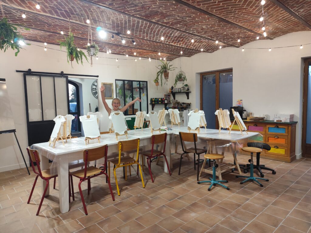 Tout le matériel est fourni : bar à peinture complet, tabliers, palettes, pinceaux et accessoires.